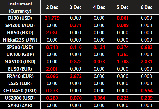 Please be advised that the dividends of the following index CFDs will be adjusted by upcoming ex-dividend dates. The comment for trading index CFDs will be in the following format “Div&<Product Name>&<Net Volume>” which show in the balance after the close of the day before the dividend payment date.